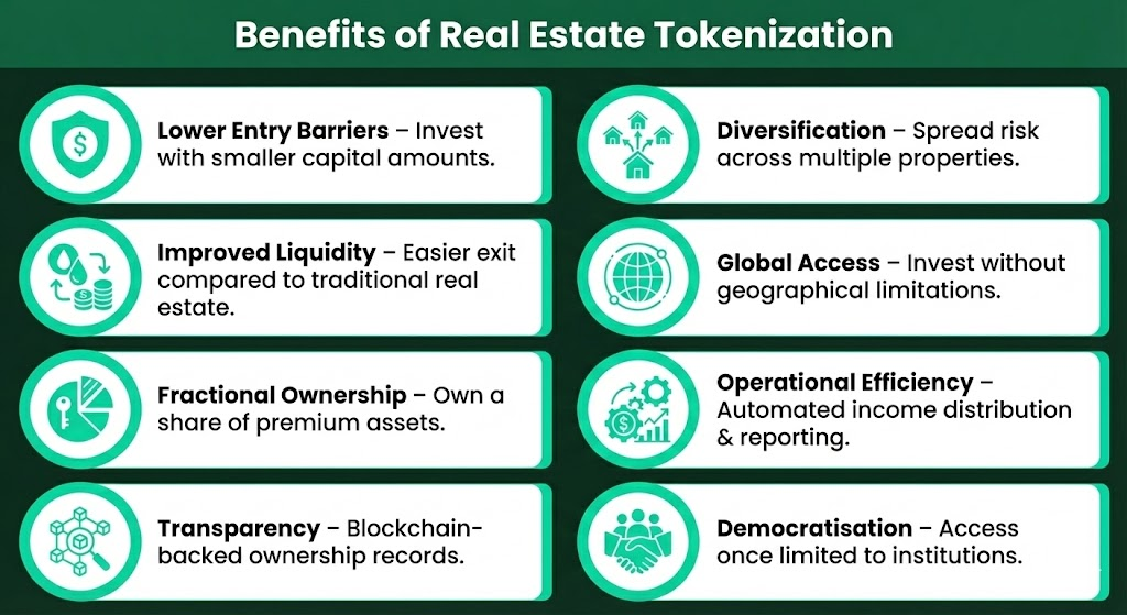 One of the defining features of tokenization is lower entry barriers. Investors can gain exposure to real estate with smaller ticket sizes compared to buying an entire property.